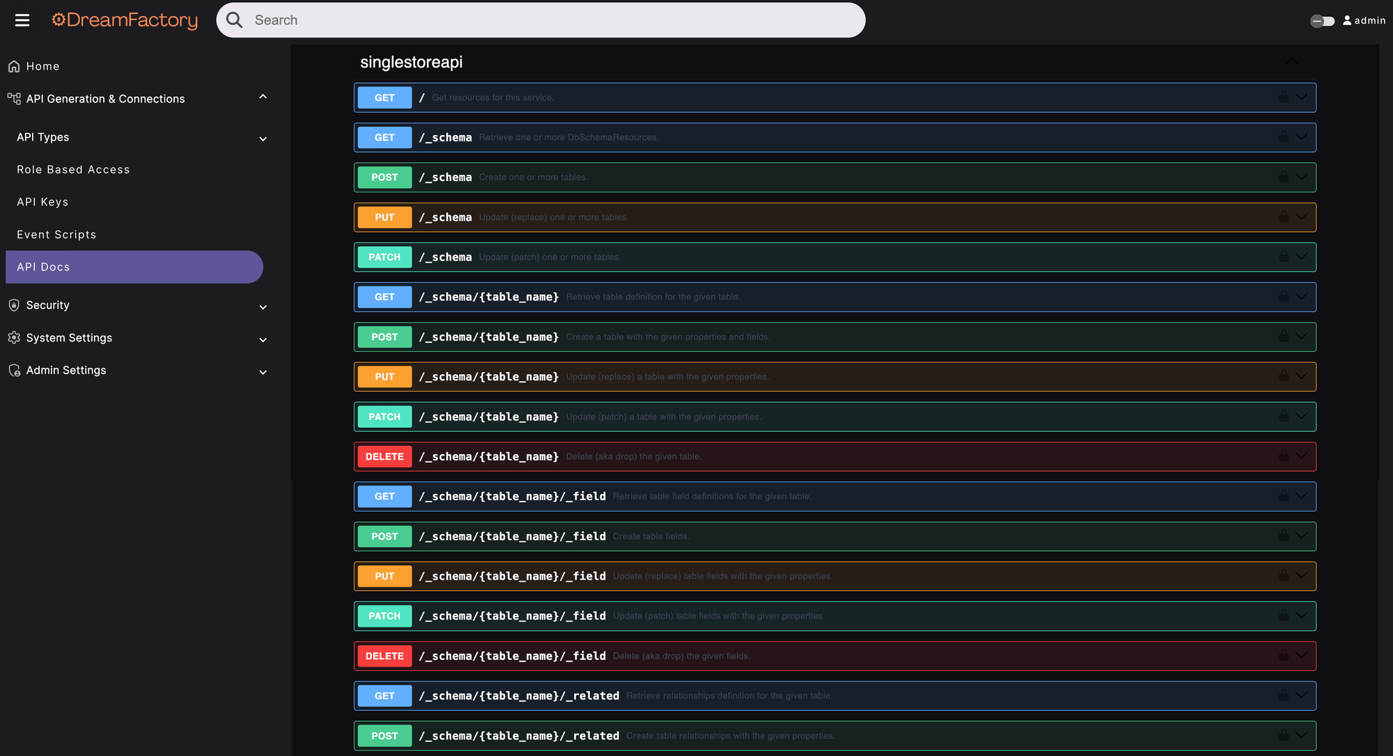 DreamFactory provides robust API documentation capabilities, automatically generating comprehensive, interactive API docs for every generated API.